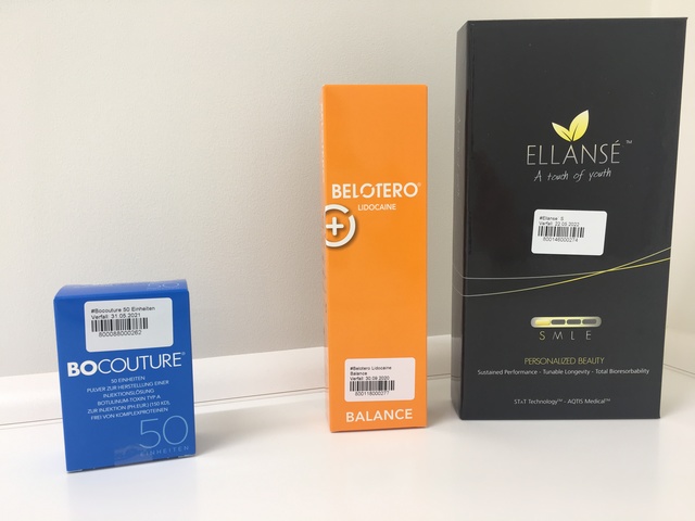 Botox: Botox, oder Botulinumtoxin, ist eine Injektionsbehandlung, die zur Behandlung von dynamischen Falten verwendet wird. Dynamische Falten entstehen durch wiederholte Muskelbewegungen, wie zum Beispiel die Falten zwischen den Augenbrauen (Glabellafalten) und die Stirnfalten. Botox wirkt, indem es die Muskelaktivität vorübergehend lähmt, wodurch die Falten entspannt werden und weniger sichtbar sind. Die Wirkung von Botox hält normalerweise drei bis sechs Monate an.