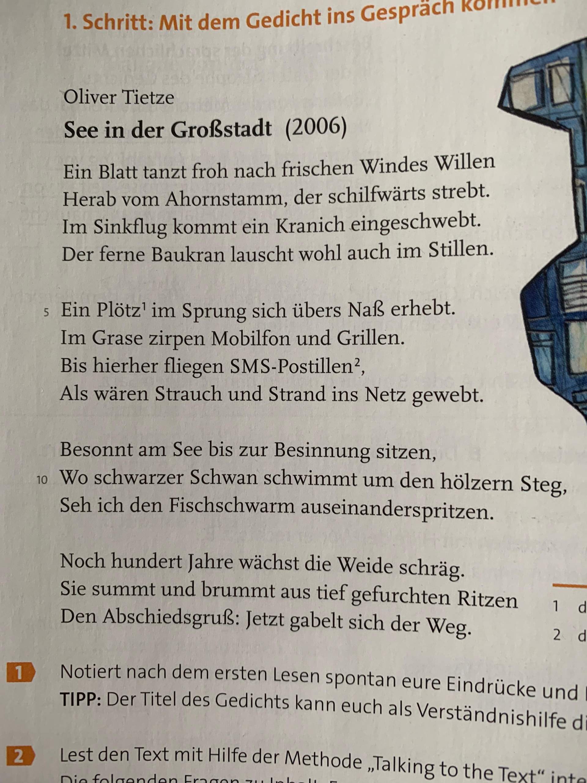 - Sprachliche Effekte: Der Autor kann bestimmte sprachliche Effekte wie Alliteration, Assonanz oder Anapher verwenden, um die Aufmerksamkeit des Lesers zu lenken oder bestimmte Wörter oder Ideen zu betonen. Diese stilistischen Mittel tragen zur poetischen Qualität des Gedichts bei und schaffen eine angenehme Leserfahrung.